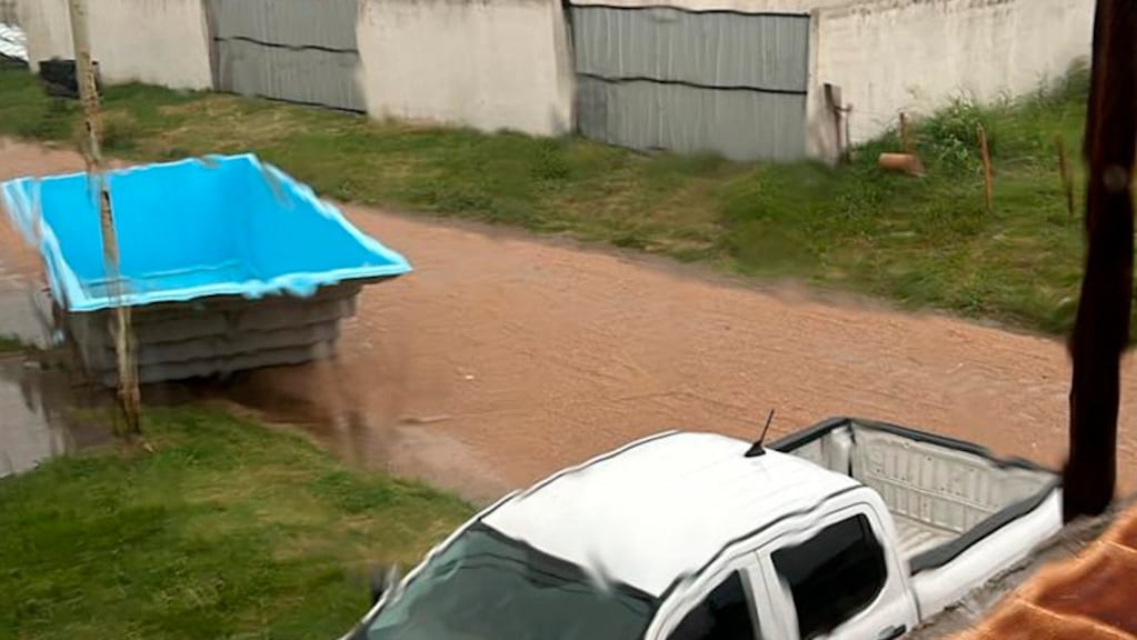 En barrio Nuevo Bimaco un vecino se encontró con una pileta que fue arrastrada hasta la puerta de su casa por las intensas ráfagas.