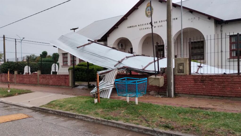 Por otra parte, en Reducción el viento causó la voladura de un techo en la escuela Capitán Francisco Domingo Zarco. La estructura de chapa quedó frente al establecimiento.