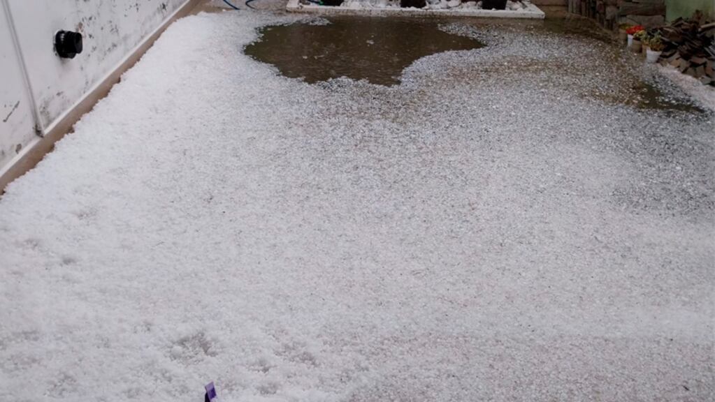 En tanto en Coronel Moldes reportaron abundante caída de granizo con mucha agua. La localidad quedó en gran parte cubierta de blanco en un paisaje parecido al de la nieve. En Sampacho también se produjo una pedrea en horas de la siesta.